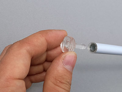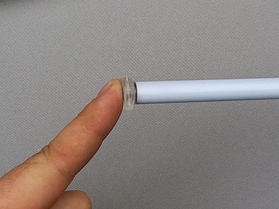 9. Подготовьте утяжелительную металлическую трубку. С обеих сторон вставляем прозрачные заглушки с бортиками, до упора (щелчка).