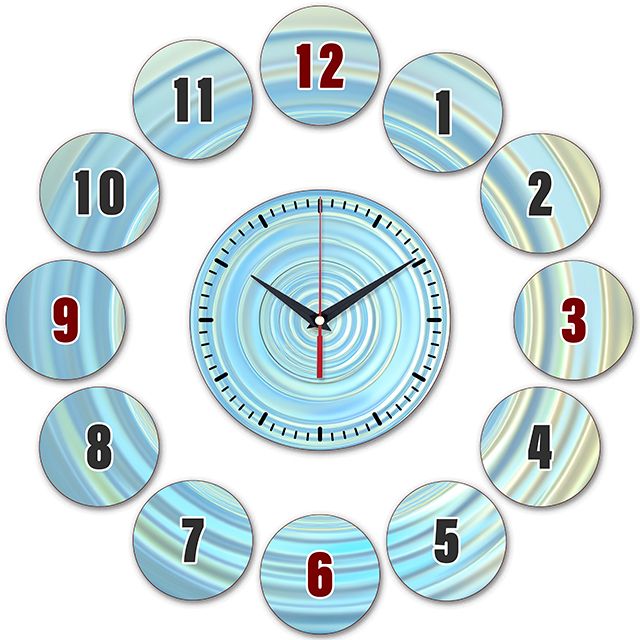 Настенные часы с рисунком голубых кругов на кругах.