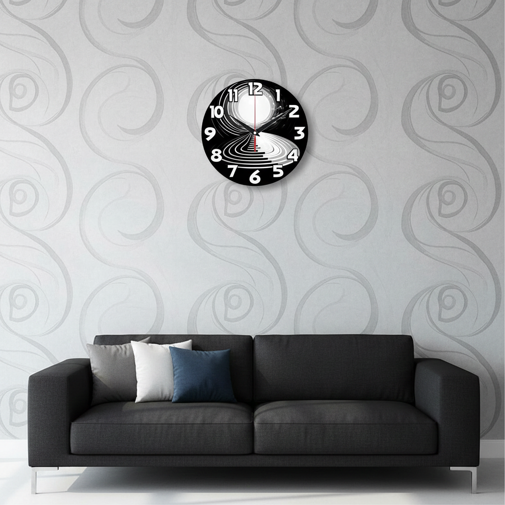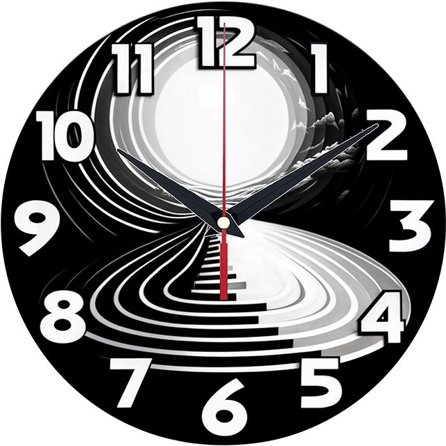 «Абстрактная спираль» — загадочные, гипнотические настенные часы с абстрактным узором в виде спирали или лестницы, уходящей в световой туннель, в монохромных чёрно-белых оттенках. Крупные объёмные белые цифры и контрастные тёмные стрелки прекрасно читаются. Подходит для современного интерьера, лофта, студии или кабинета и станет отличным подарком для ценителя абстракции, сюрреализма или философа. Смотрите всю категорию «настенные часы».