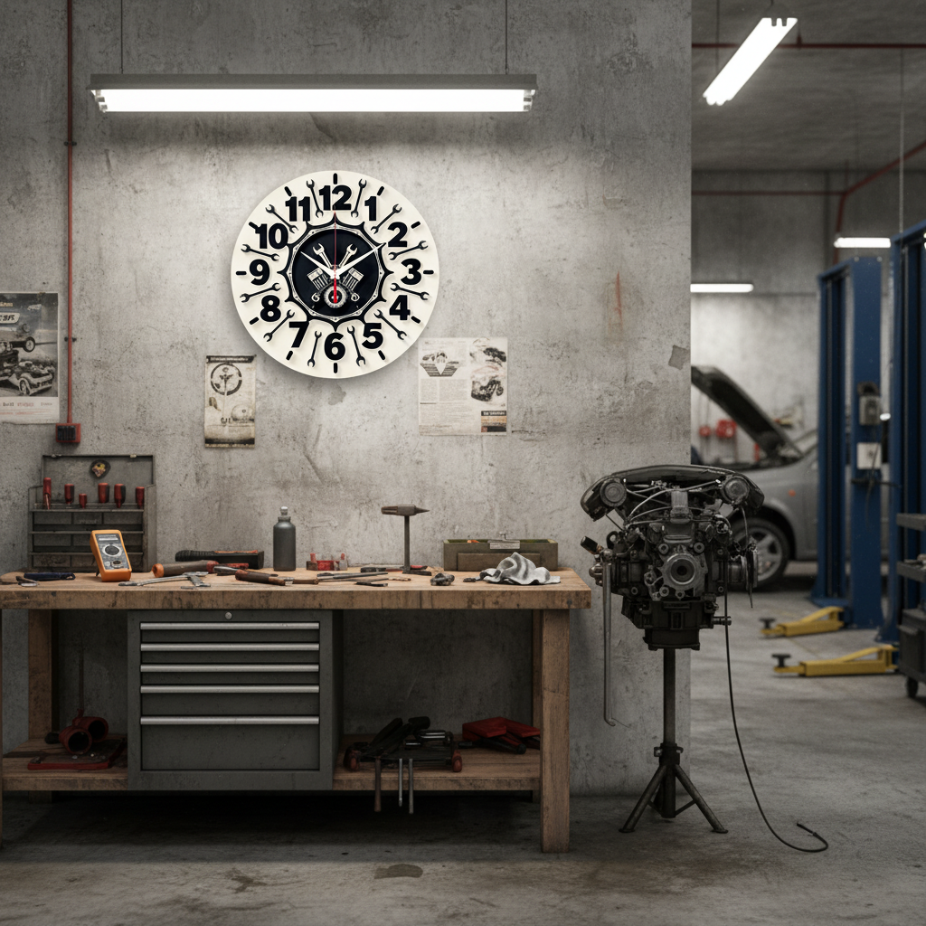 Картина Автомастерская на настенных часах