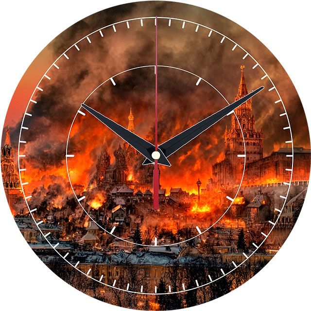 Картина Горящая москва на настенных часах