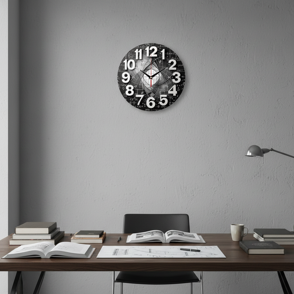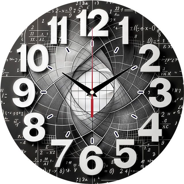 «Математика» — интеллектуальные, стильные настенные часы с абстрактным геометрическим узором и математическими формулами на фоне школьной доски, в монохромных чёрно-белых тонах. Крупные объёмные белые цифры и контрастные тёмные стрелки прекрасно читаются. Подходит для кабинета, офиса, комнаты студента или учебного класса и станет отличным подарком для математика, учителя, инженера или любого, кто ценит точные науки. Выбирайте, какой выбрать настенные часы.