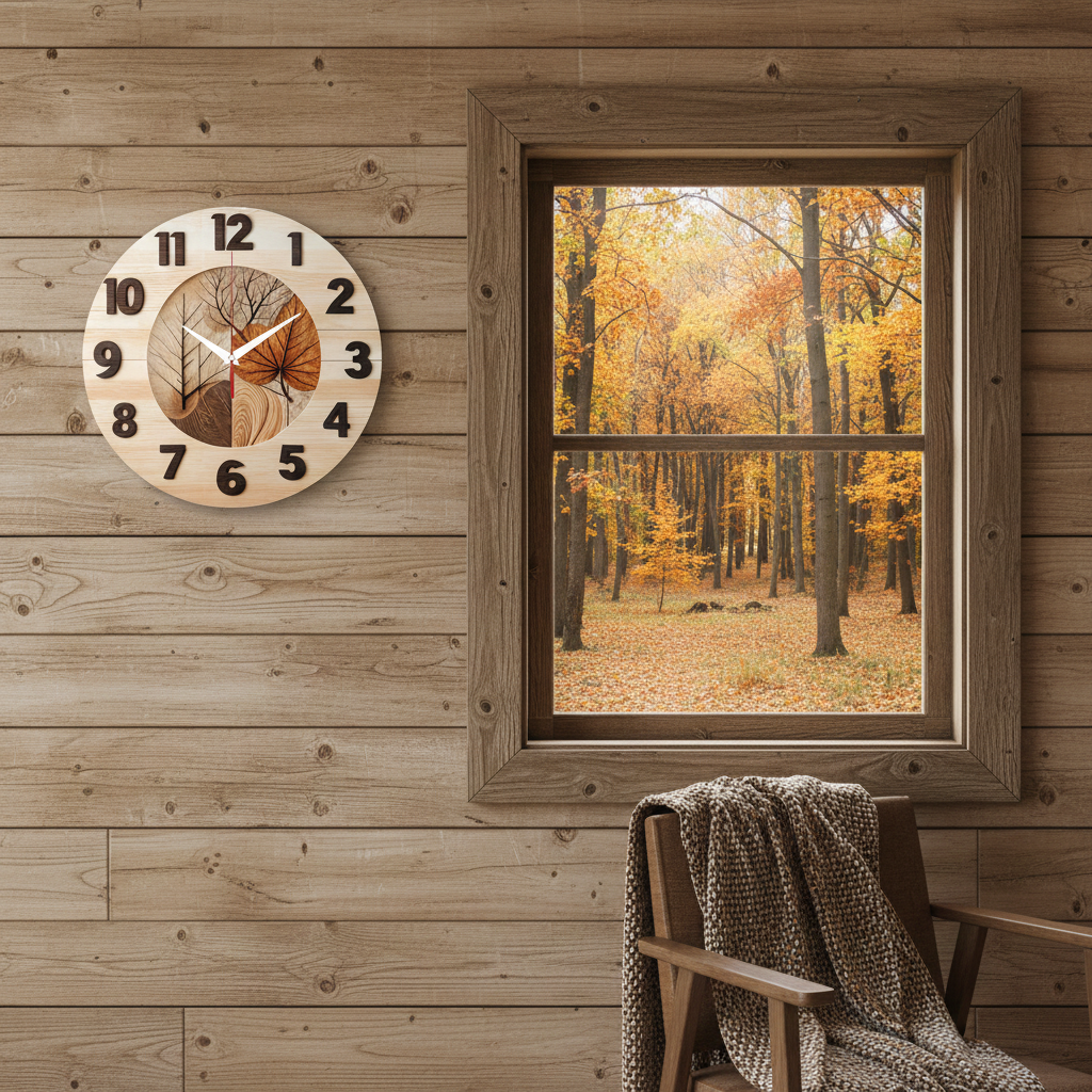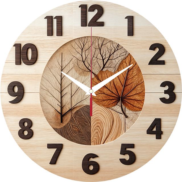 «Осенний лес» — уютные, природные настенные часы с изображением осеннего леса с деревьями и листьями, с текстурой дерева, в бежевых, коричневых и древесных оттенках. Объёмные тёмно-коричневые цифры и контрастные белые стрелки прекрасно читаются. Подходит для загородного дома, кухни, гостиной в экостиле или кантри и станет отличным подарком для любителя природы, осени или деревенского стиля. Смотрите все настенные часы.