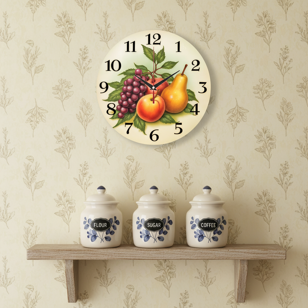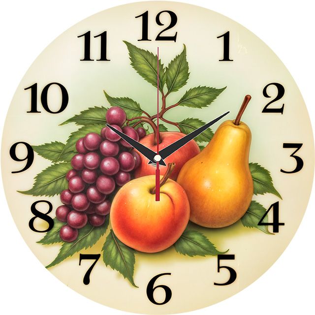 «Осенний натюрморт» — уютные, классические настенные часы с живописным натюрмортом (яблоки, груша, виноград) в тёплых красных, жёлтых и зелёных оттенках. Крупные чёрные арабские цифры и контрастные тёмные стрелки прекрасно читаются на светлом фоне. Подходит для кухни, столовой или дачи в стиле кантри и станет прекрасным подарком для хозяйки, садовода или любителя классических натюрмортов. Смотрите весь раздел настенных часов.