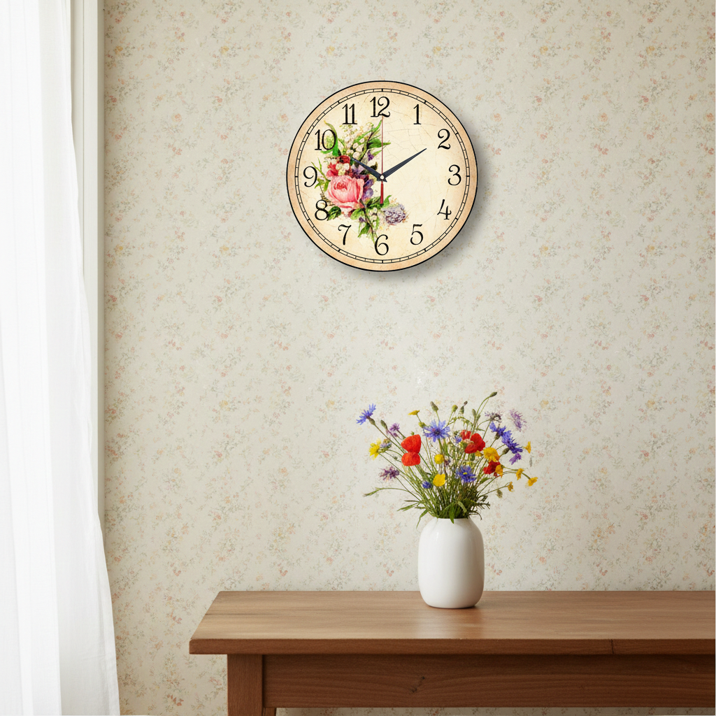 «Прованс Винтажные» — нежные, романтичные настенные часы с изображением винтажного букета (розы, ландыши, фиалки) на фоне потрескавшейся бумаги в пастельных розовых, сиреневых и бежевых тонах. Крупные чёрные арабские цифры и контрастные тёмные стрелки прекрасно читаются. Подходит для кухни, спальни или гостиной в стиле прованс или шебби-шик и станет прекрасным подарком для романтичной натуры или ценителя винтажного стиля. Смотрите весь раздел настенных часов.