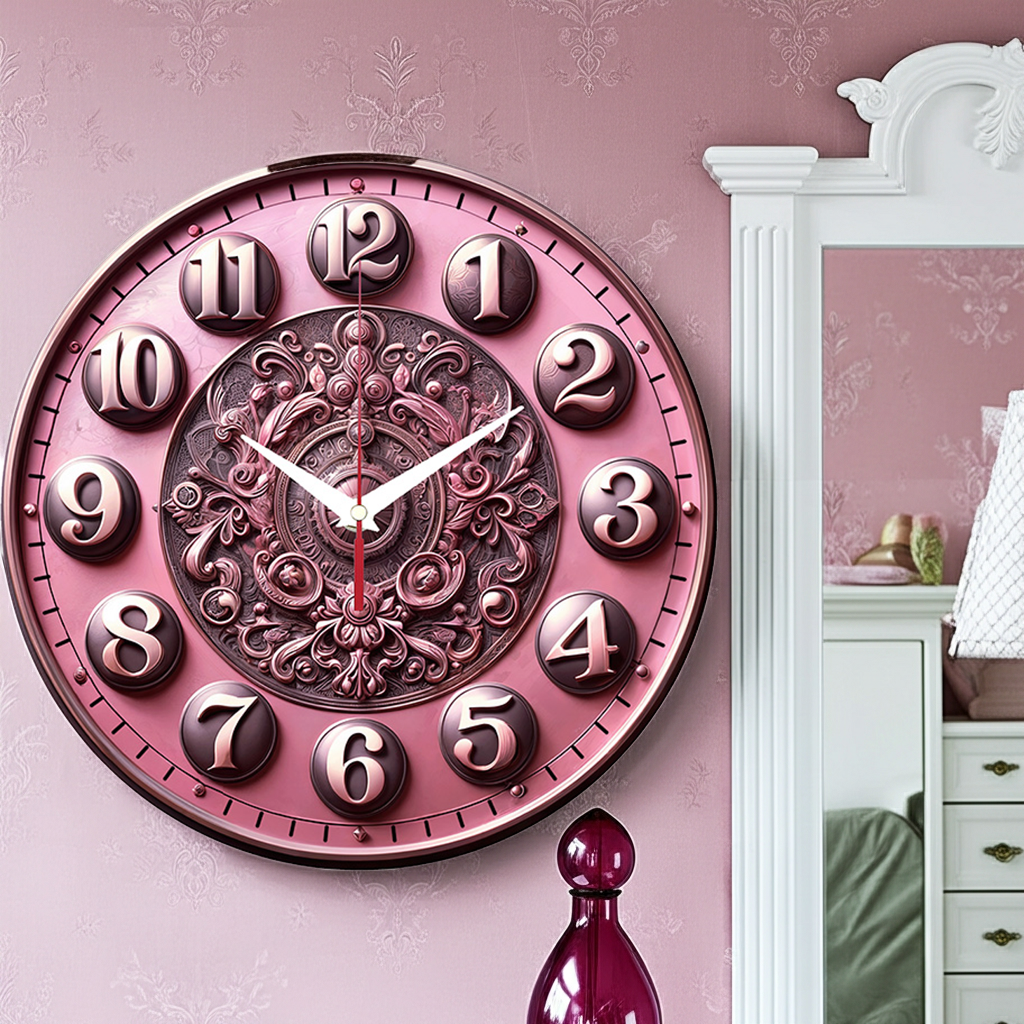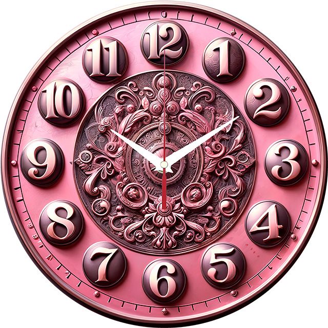 «Розовая элегантность» — изысканные, элегантные настенные часы с богатым орнаментом в стиле барокко или рококо на розовом фоне, в розовых, коричневых и бежевых оттенках. Объёмные цифры и контрастные белые стрелки прекрасно читаются. Подходит для спальни, гостиной в стиле шебби-шик или классика, салона красоты и станет прекрасным подарком для ценительницы элегантности и роскоши. Смотрите все настенные часы.