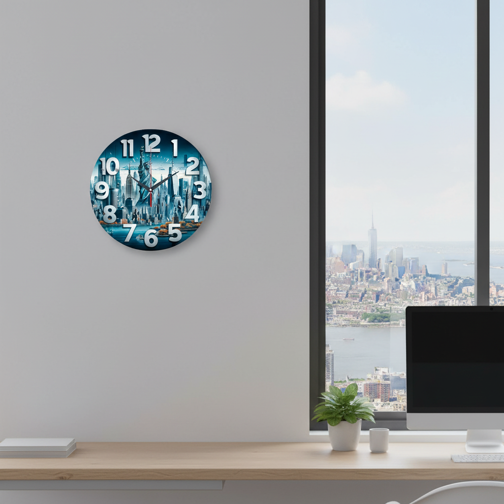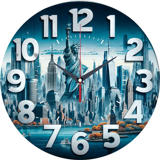 «Статуя Свободы» — величественные, городские настенные часы с панорамой Нью-Йорка и Статуей Свободы в синих, серых и бежевых оттенках. Крупные объёмные белые цифры и контрастные тёмные стрелки прекрасно читаются. Подходит для кабинета, гостиной, офиса или комнаты подростка и станет отличным подарком для путешественника, любителя Америки или ценителя городских пейзажей. Смотрите полный каталог настенных часов.