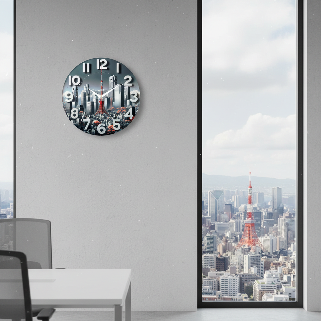«Токийская башня» — стильные, урбанистические настенные часы с панорамой Токио, выделяющейся красной телебашней, на фоне гор Фудзи, в серых, белых и красных оттенках. Крупные объёмные белые цифры и контрастные белые стрелки прекрасно читаются. Подходит для современного интерьера, лофта, комнаты подростка или офиса и станет отличным подарком для любителя Японии, путешественника или ценителя городских пейзажей. Смотрите каталог настенных часов.