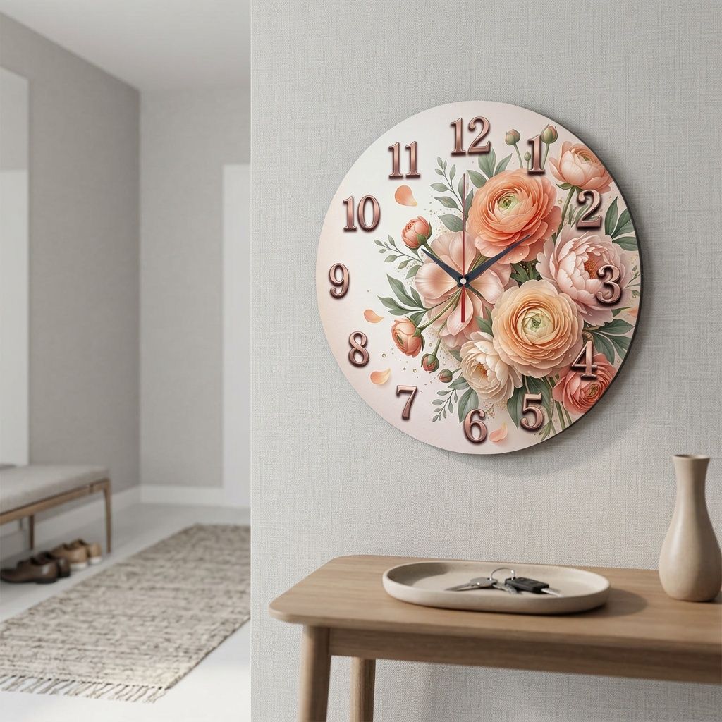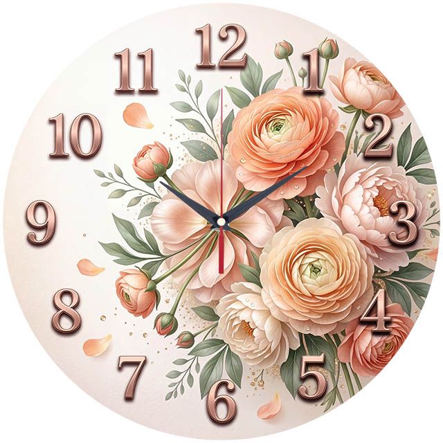 «Букет ранункулюсов» — Уютные настенные часы с изображением пышного букета нежных цветов, в персиковых и кремовых оттенках. Крупные цифры с эффектом объема и изящные стрелки гармонично дополняют дизайн. Подходит для спальни, гостинной и комнаты и станет прекрасным подарком для близких, предлагаем вам изучить эти часы на стену цены в нашем магазине.