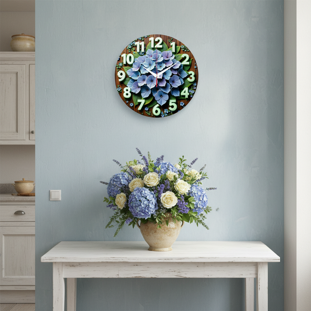 Картина Гортензия на настенных часах