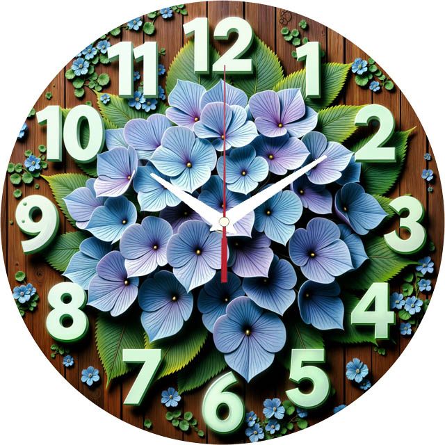 «Гортензия» — нежные, садовые настенные часы с пышным букетом голубой гортензии на фоне тёмного дерева, в синих, зелёных и коричневых оттенках. Крупные светло-зелёные цифры и контрастные белые стрелки хорошо читаются. Подходит для кухни, гостиной в стиле прованс или загородного дома и станет прекрасным подарком для любителя цветов или дачника. Смотрите полный список настенных часов.