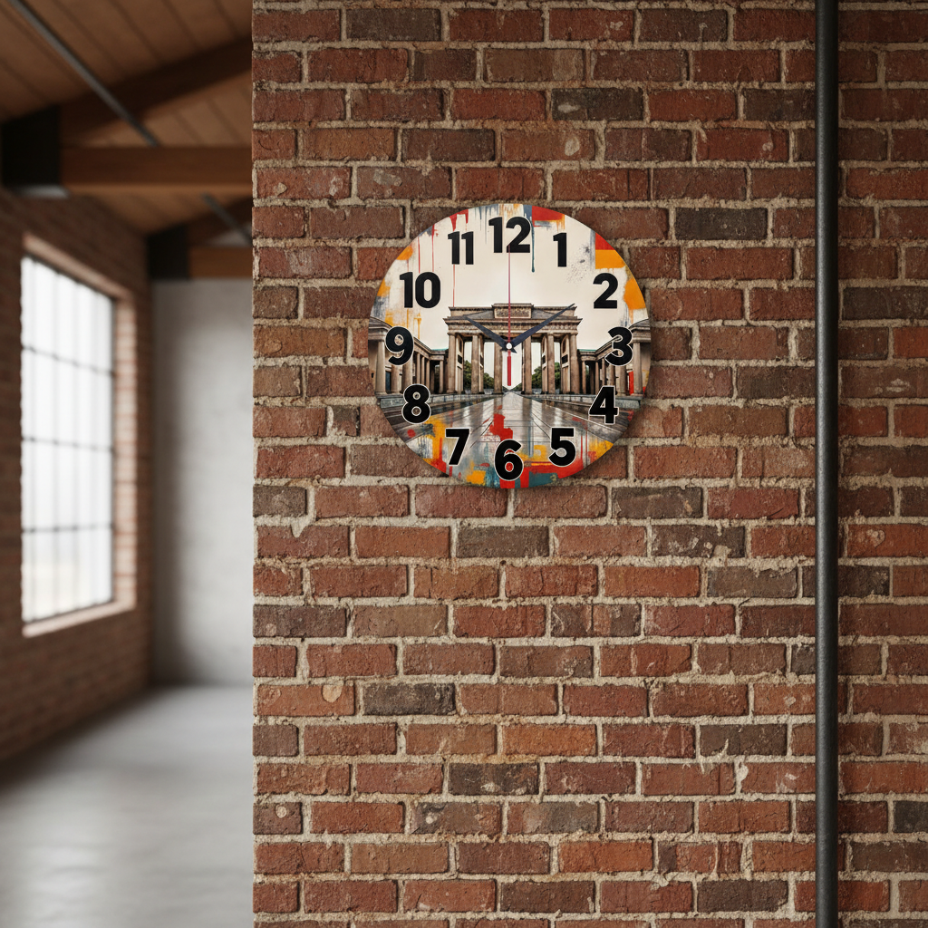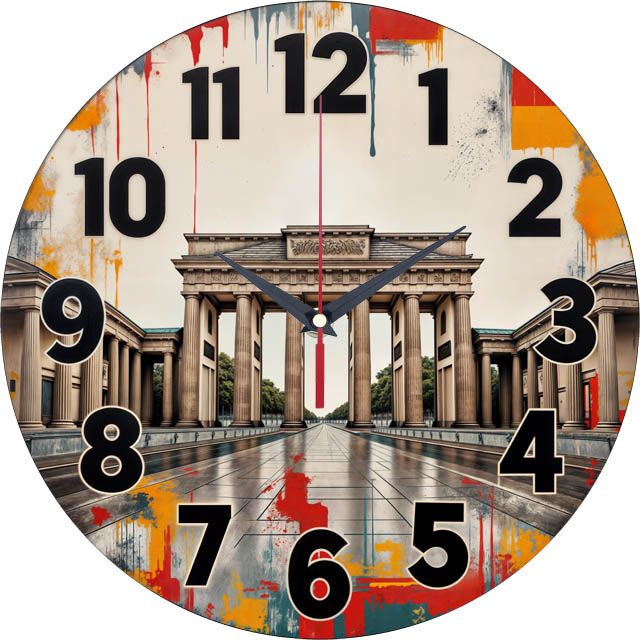 «Берлин» — современные урбанистические настенные часы с изображением Бранденбургских ворот, выполненным в стиле стрит-арт с яркими брызгами краски. Крупные чёрные цифры и тёмные стрелки создают чёткий контраст на фоне в оттенках серого, красного и жёлтого. Подходит для лофта, студии или современной гостиной и станет стильным подарком для любителя путешествий или ценителя городского искусства. Смотрите полный каталог.