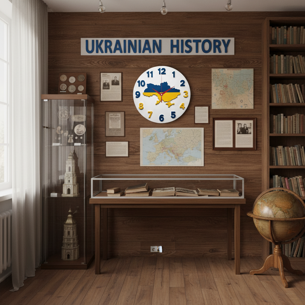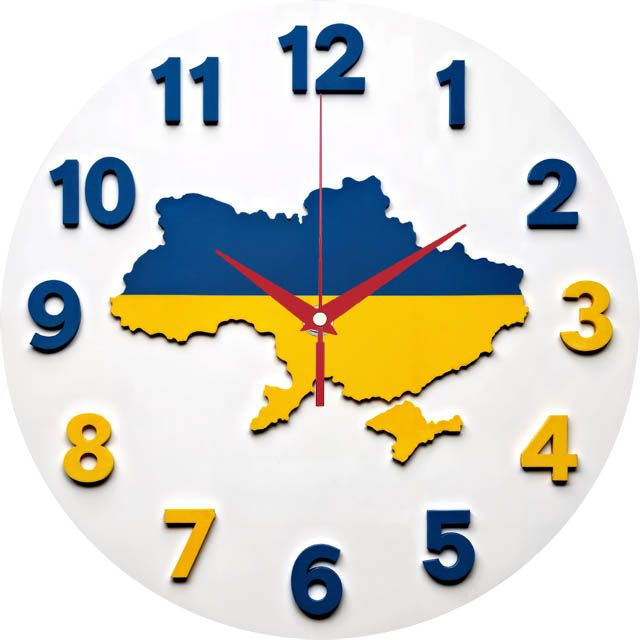 «Карта Украины» — лаконичные патриотические настенные часы с силуэтом страны в цветах флага на белом фоне; по кругу — крупные контрастные цифры синего и жёлтого со светлым кантом. Красные стрелки читаются с первого взгляда. Подходит для гостиной, кабинета, офиса, классов и коворкингов и станет символичным подарком друзьям Украины и ценителям украинского дизайна. Если близка идея локального крафта, загляните в подборку часы украинского производства.