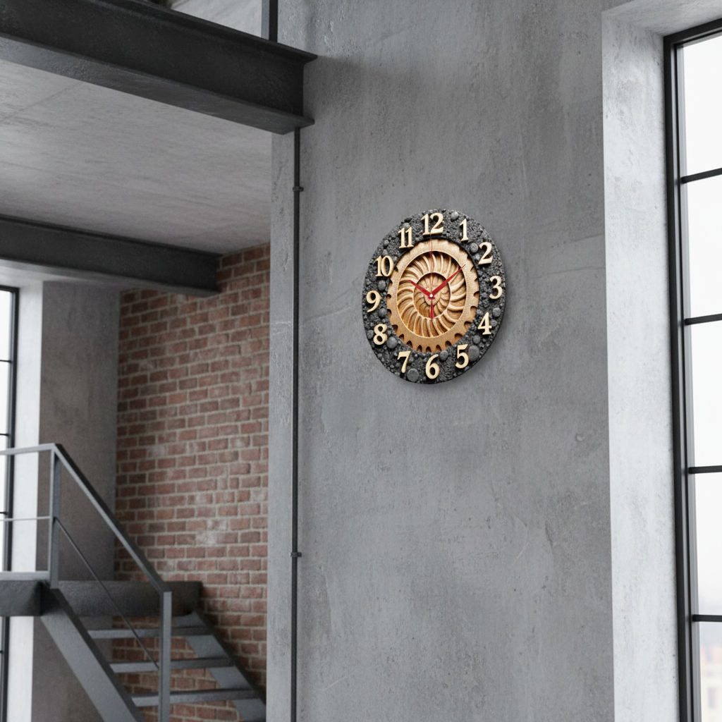 «Лунный аммонит» — атмосферные фантазийные настенные часы с космо-природным мотивом: спираль аммонита в ореоле лунного свечения и звёзд; по кругу — крупные контрастные рельефные цифры с мягкой тенью. В оттенках глубокого индиго, ночного синего, фиолетового и серебристых отблесков. Лаконичные тёмные стрелки читаются комфортно. Подходит для спальни, гостиной, кабинета/креативного офиса и станет вдохновляющим подарком мечтателям, любителям природы и космической эстетики. Если откликается такой космический акцент, загляните в подборку настенные часы.