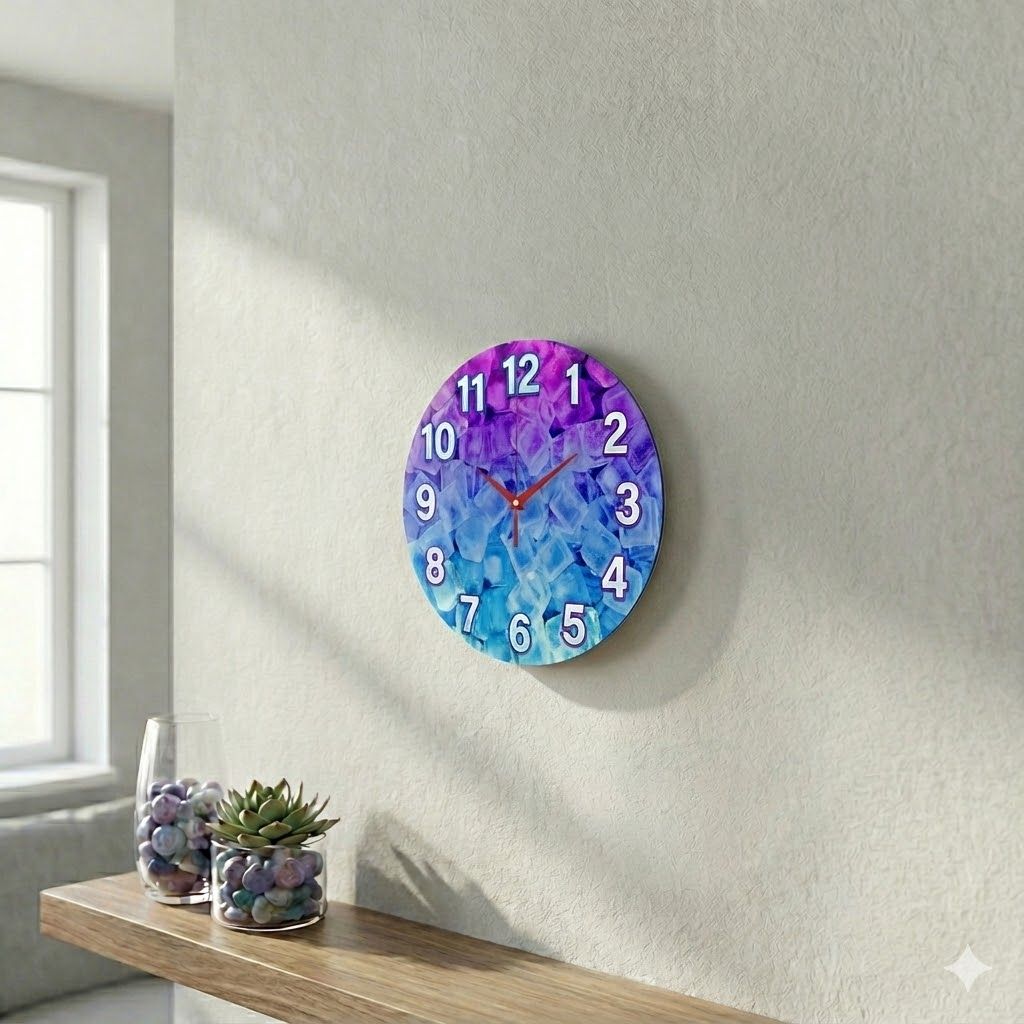 «Морозная свежесть» — Стильные настенные часы с изображением освежающих кубиков льда, в синих и фиолетовых оттенках. Крупные белые цифры и яркие красные стрелки. Подходит для кухни, гостинной, офиса и станет эффектным подарком для друзей и коллег, предлагаем вам выбрать настенные часы в нашем каталоге.
