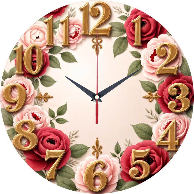 «С розами» — романтичные настенные часы с флористическим орнаментом в оттенках кремового, пудрово-розового и алого. Крупные объёмные золотистые цифры и лаконичные тёмные стрелки органично читаются на светлом фоне. Подходит для классики, прованса и шебби-шик; станет нежным подарком для неё, к свадьбе или годовщине. Смотрите каталог.