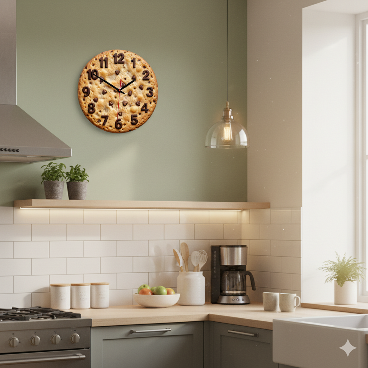 «Шоколадное печенье» — аппетитные настенные часы с гиперреалистичным изображением печенья с шоколадной крошкой в тёплых бежевых и коричневых оттенках. Объёмные цифры, стилизованные под шоколад, и тёмные стрелки прекрасно читаются на "вкусном" фоне. Подходит для кухни, детской комнаты или уютного кафе и станет весёлым подарком для сладкоежки. Выбирайте, где купить настенные часы онлайн.