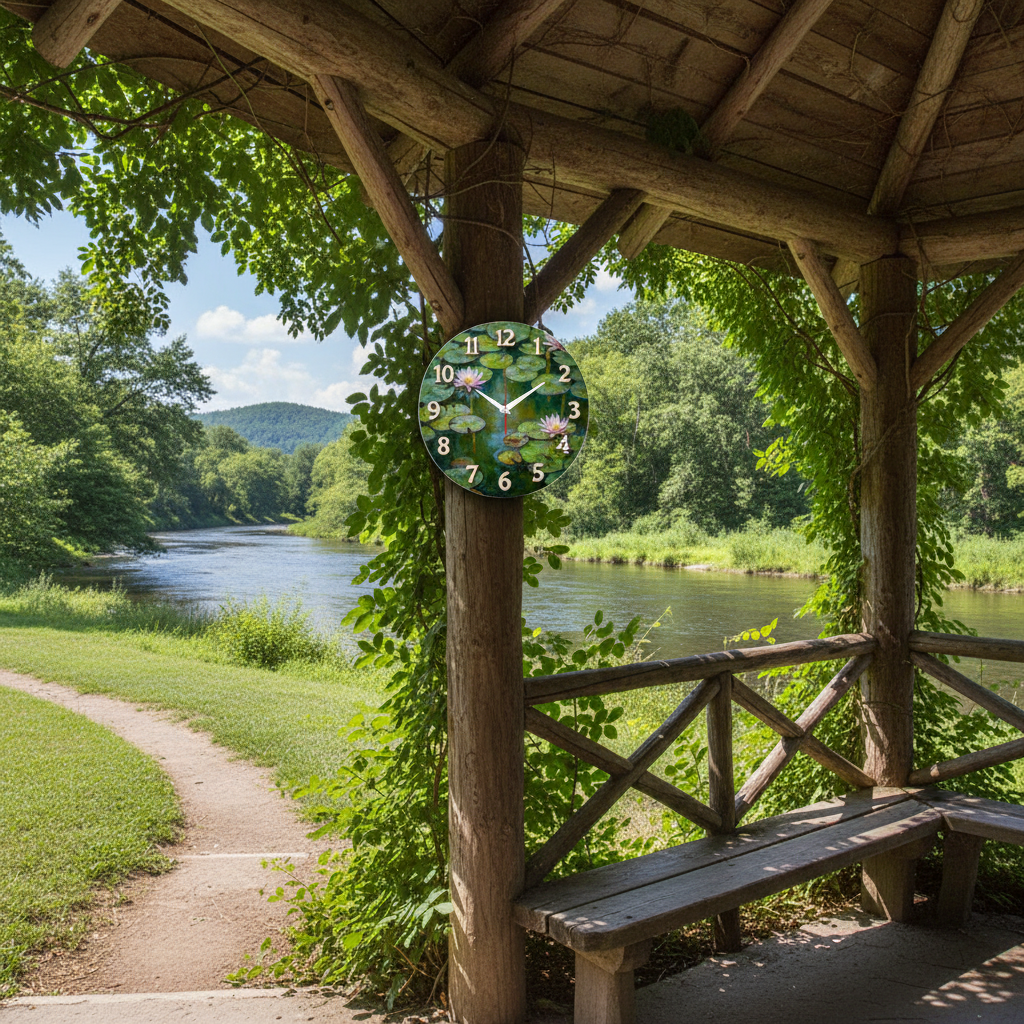 «Водные лилии» — спокойные интерьерные настенные часы с живописным природным сюжетом: лататья на тихой глади; по кругу — крупные рельефные цифры со светлым кантом, органично вписанные в композицию. В оттенках бирюзово-зелёного, мятно-оливкового, розово-перламутрового з лимонно-жёлтыми акцентами. Светлые стрелки читаются. Подходит для спальни, гостиной, студии релакса/йоги и станет продуманным подарком любителям природы и импрессионизма. Если откликается такой природный мотив, присмотритесь к подборке настенные часы.