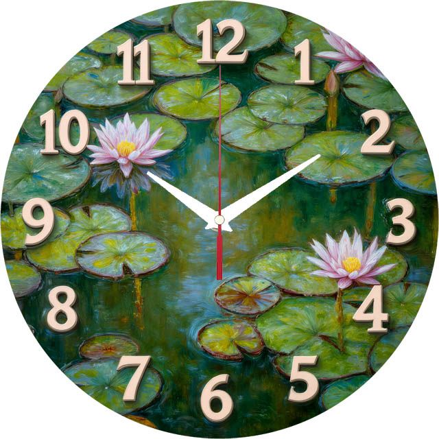 Картина «Водные лилии» на настенных часах