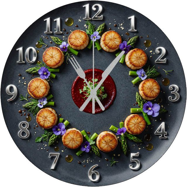 Настенные часы Жареные гребешки с соусом c-362 (часы картинки) 🕑