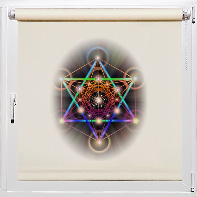 Куб Метатрона является одним из наиболее важных символов в каббале, который олицетворяет божественную гармонию и единство всего сущего. Эксклюзивная рулонная штора на окне, поможет создать зону для медитации или уединенного релакса.