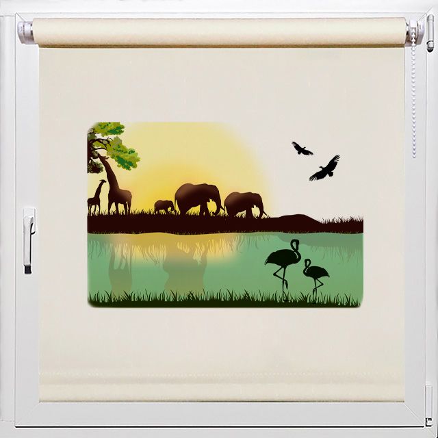 Современные рулонные шторы в спальню с изображением "Африканский рассвет" На шторах изображен живописный африканский рассвет, который завораживает своими цветами и великолепными силуэтами животных. Это идеальный выбор для любителей природы и путешествий. Погрузитесь в атмосферу загадочной Африки и создайте в спальне милый уголок экзотики.