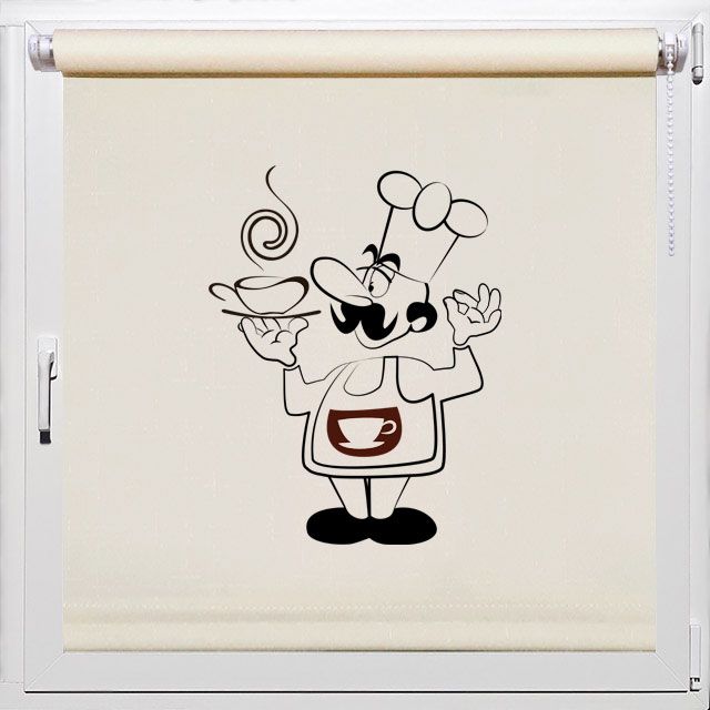 Предлагаем Вам купить тканевые ролеты на кухню Rollpic 1011 с изображением симпатичного мультяшного баристы. Он каждое утро на кухне будет встречать Вас и близких с хорошим настроением. “Бариста” напомнит о том что утро начинается с кофе и составит компанию. Заряжайте себя и окружающих на позитив! Обращаем внимание, эту картинку можно сделать в любом цвете и под любой интерьер.