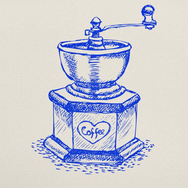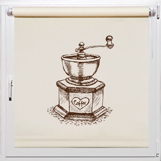Тканевые ролеты на кухню фото красивой кофемолки.