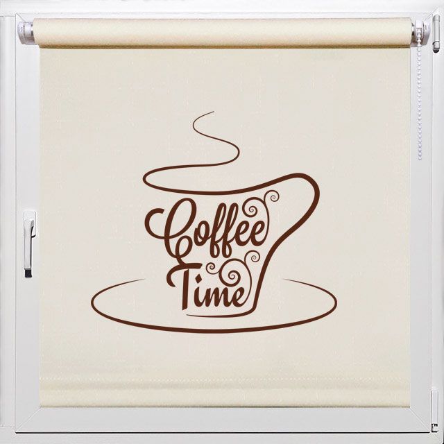 Жалюзи на кухню с надписью coffee time что в переводе означает - время для кофе. Коричневые линии в виде чашки ароматного кофе красиво переплетаются с текстом. И самое главное Вы можете заказать картинку на кухню в любом цвете (красный, синий, зелёный и т.д.) и подобрать под обои или мебель.