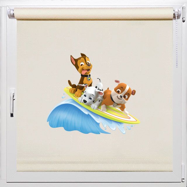 Чудесные рольшторы в детскую Rollpic 2018 с картинкой героев щенячого патруля. На шторах изображены любимые мультгерои Гонщик, Маршал и Крепыш. Щенки веселятся, катаясь на доске для сёрфинга. Они очень дружные и любят помогать всем кто попал в беду. Команда щенков в детской, будет хорошим примером для детей и взрослых как нужно относится к окружающим!