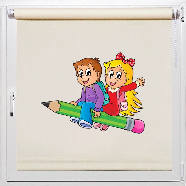 Полезные жалюзи в детский сад Rollpic 2038 с изображением малышей которые держат свой путь в мир знаний. На жалюзи изображены дошкольники летящие на карандаше в новый неизведанный мир, где они узнают для себя много нового. Картинка на жалюзи поможет воспитателю настроить своих воспитанников на учебный процесс. Жалюзи в группе детского сада создадут комфортную атмосферу для занятий. А вид из окна не будет отвлекать детей от важных дел!