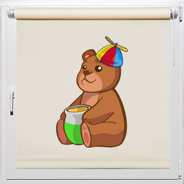 Удивительные жалюзи в детскую комнату Rollpic 2019 с фото медвежонка сладкоежки. На жалюзи изображен нарисованный мишка с бочёнком вкусного мёда. Этот ласковый медвежонок забавного вида - станет для ребёнка добрым другом. В детской комнате жалюзи с милым фото будут полезным украшением.